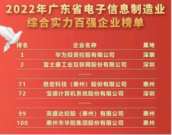 多宝电竞科技荣登2022年广东省电子信息制造业综合实力百强企业榜单